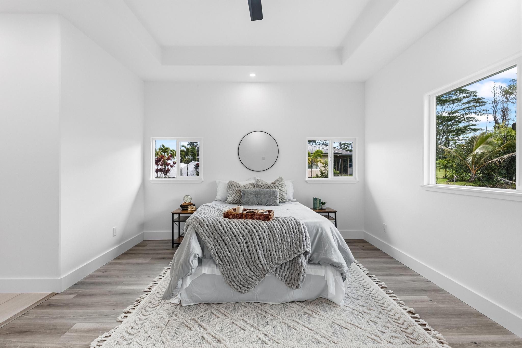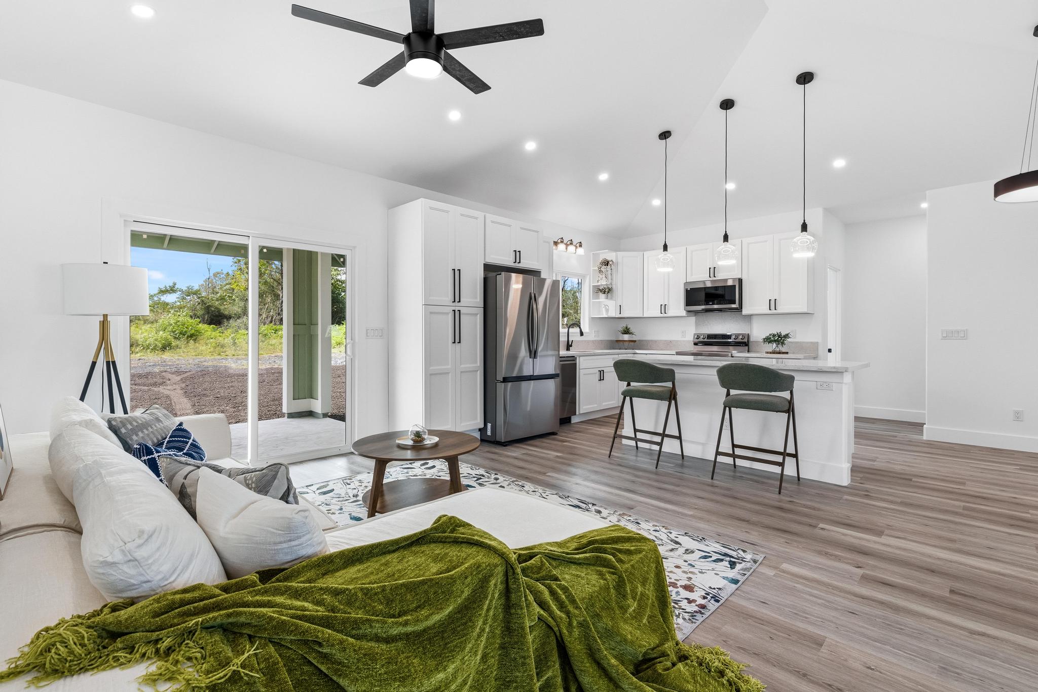 Experience the perfect blend of modern design and island living in this newly built 3 bedroom, 2 bathroom residence with a spacious two car garage, set on a full acre in Hawaiian Paradise Park.