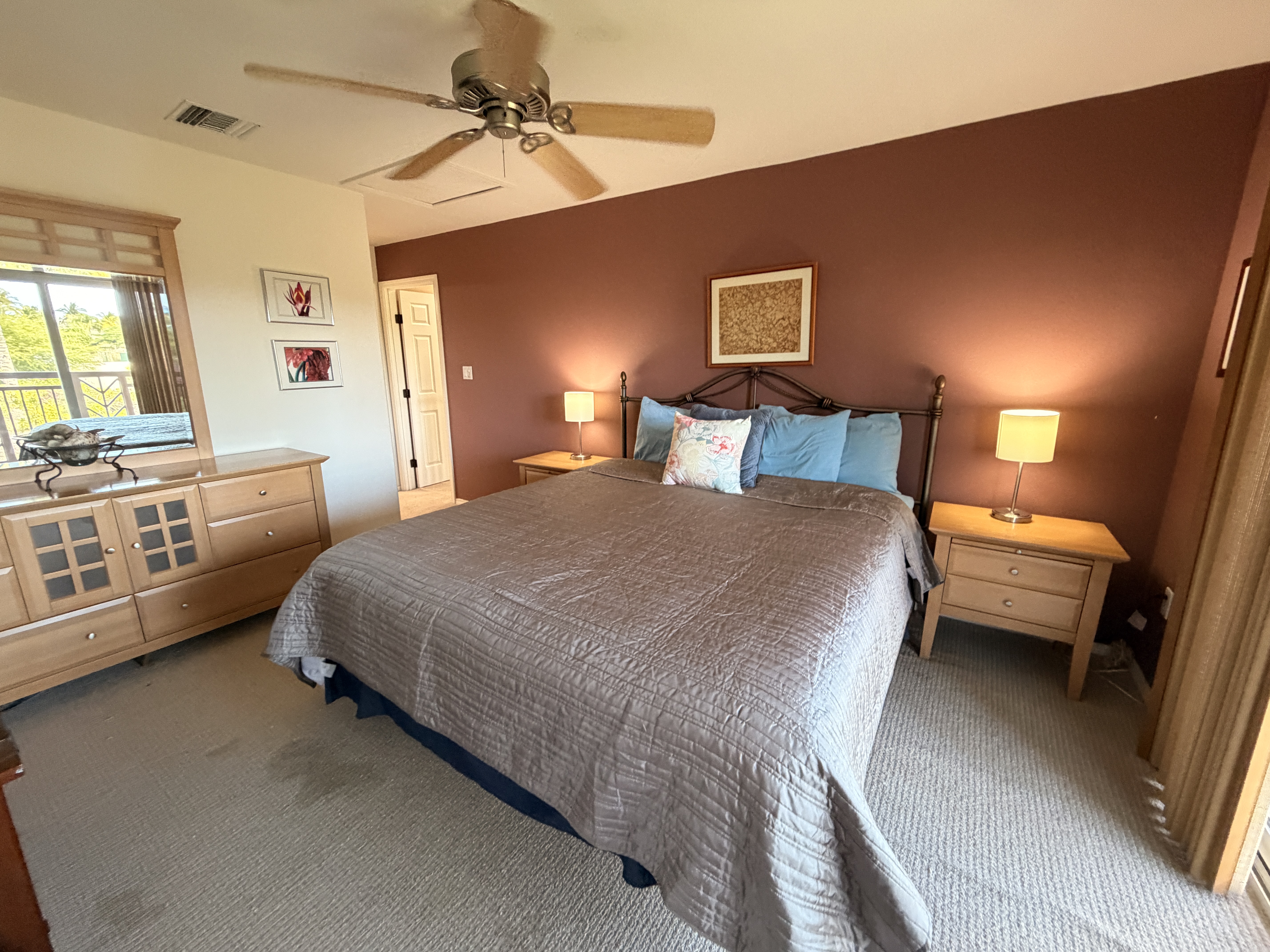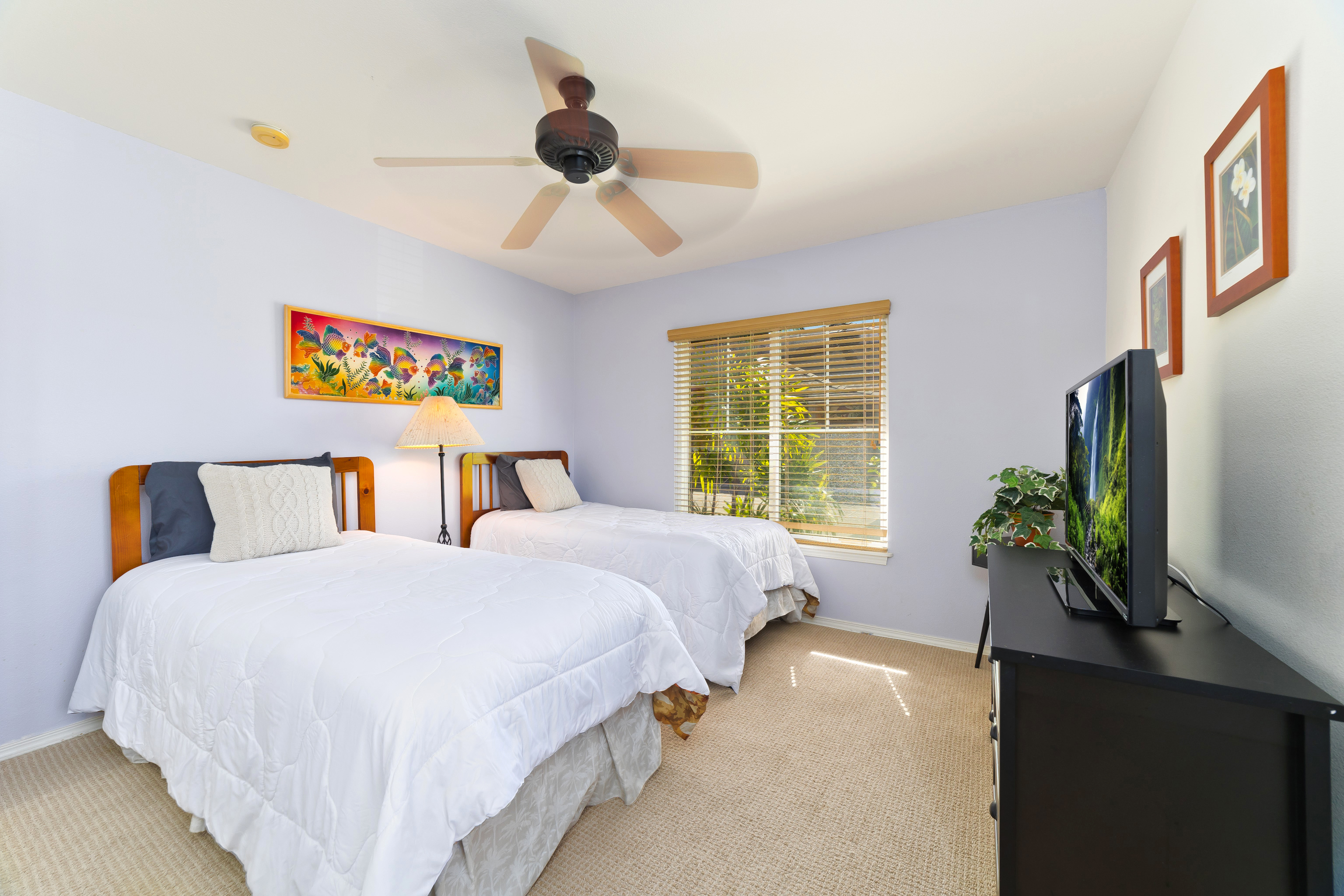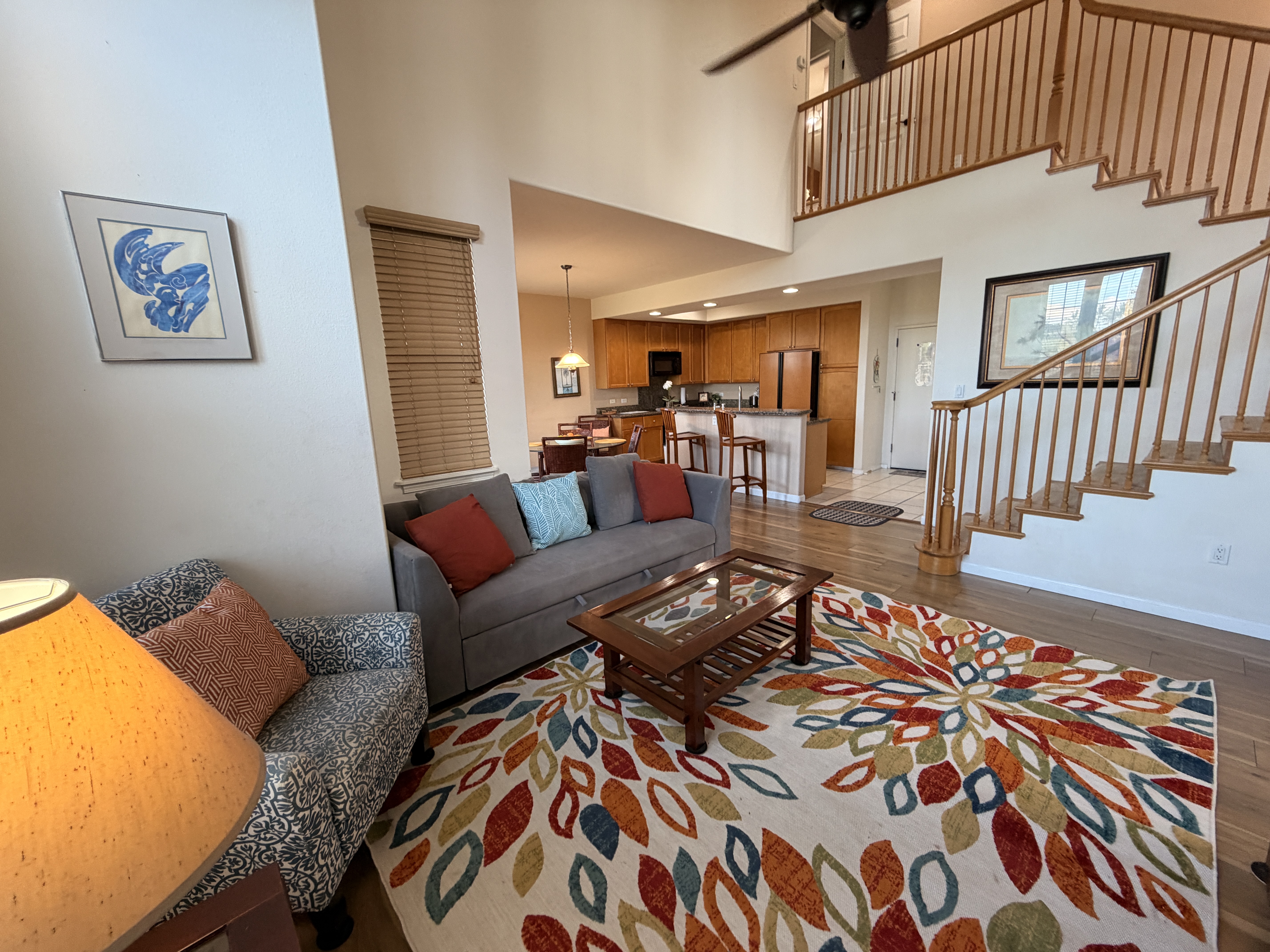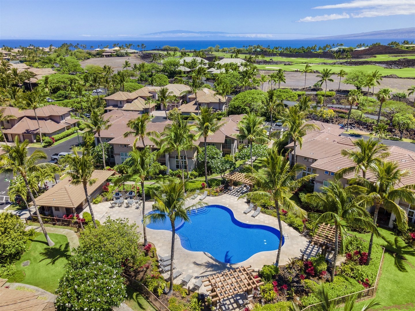 Nestled in a sought-after area of the community, the townhome boasts spectacular views of Kohala Mountain and surrounding lush greenery, providing a serene atmosphere. The layout offers excellent privacy with the guest bedroom and bathroom conveniently located on the first floor, while the primary suite with its own en suite bathroom and walk-in closet is upstairs. Enjoy this spacious corner unit with plenty of outdoor grass for recreation and relaxation.