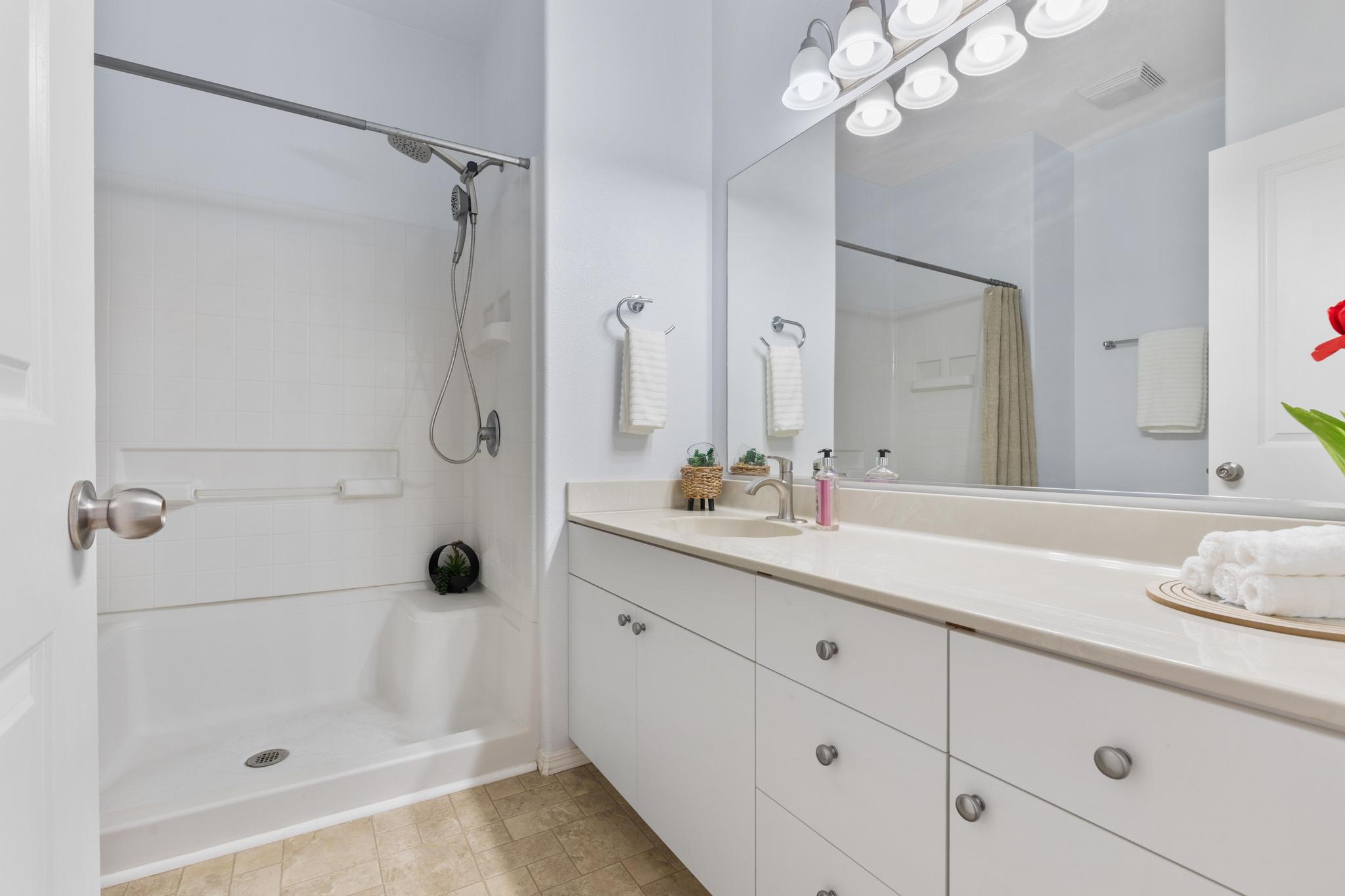 Tastefully Partially Furnished - Includes a stunning African wood high-top dining table with bar stools, large TV, Asian-style bench/table in the living room, and an executive desk in the guest room--perfect for remote work, and more...