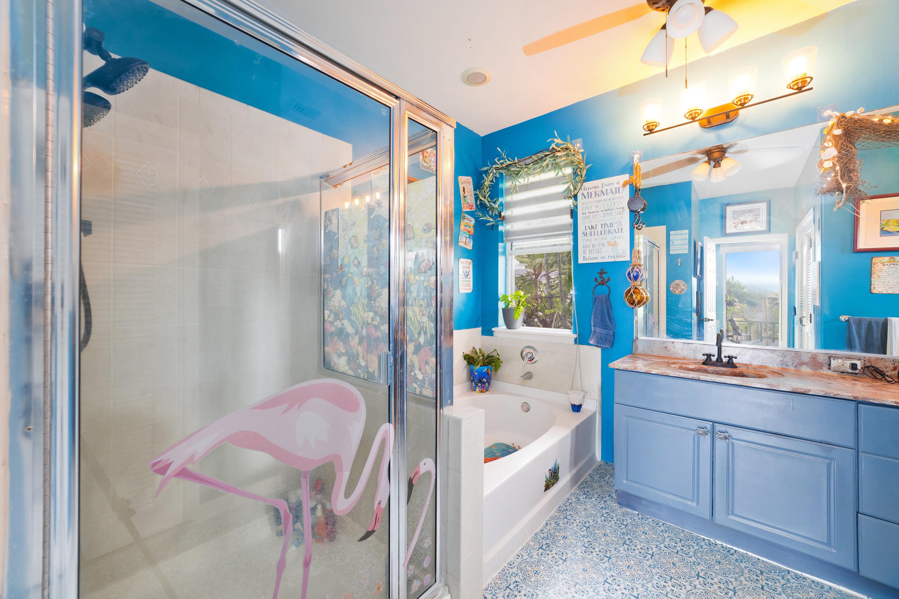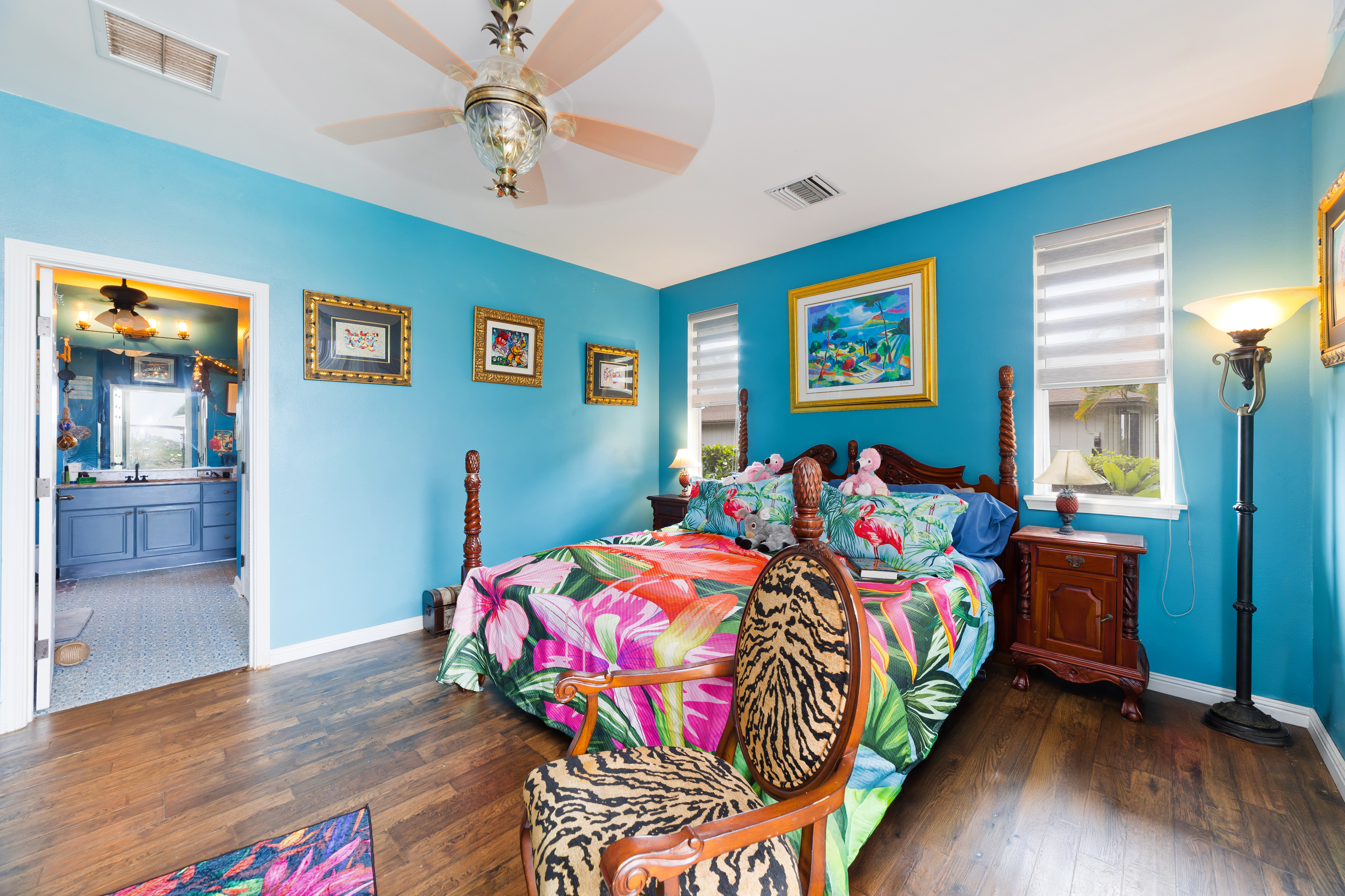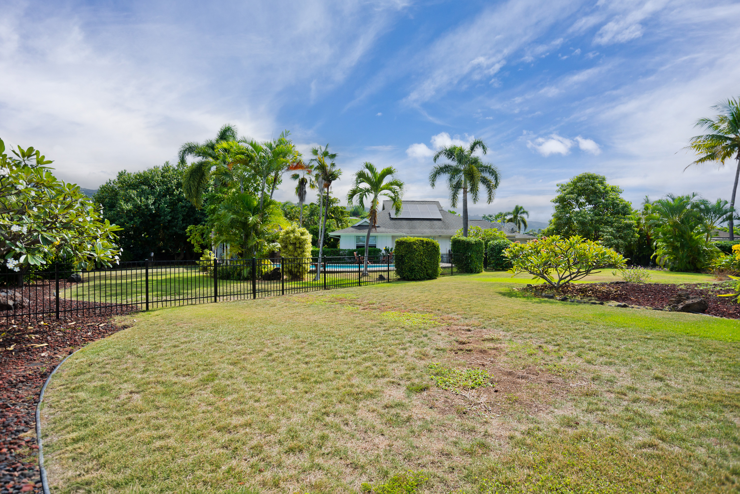 The primary suite is a retreat of its own with lanai access, a spacious bathroom, and room to unwind. The flat lot gives you endless options too, garden, expand, add a guest hale, or build out the outdoor kitchen of your dreams. There's no wasted space here. Just pure island living.