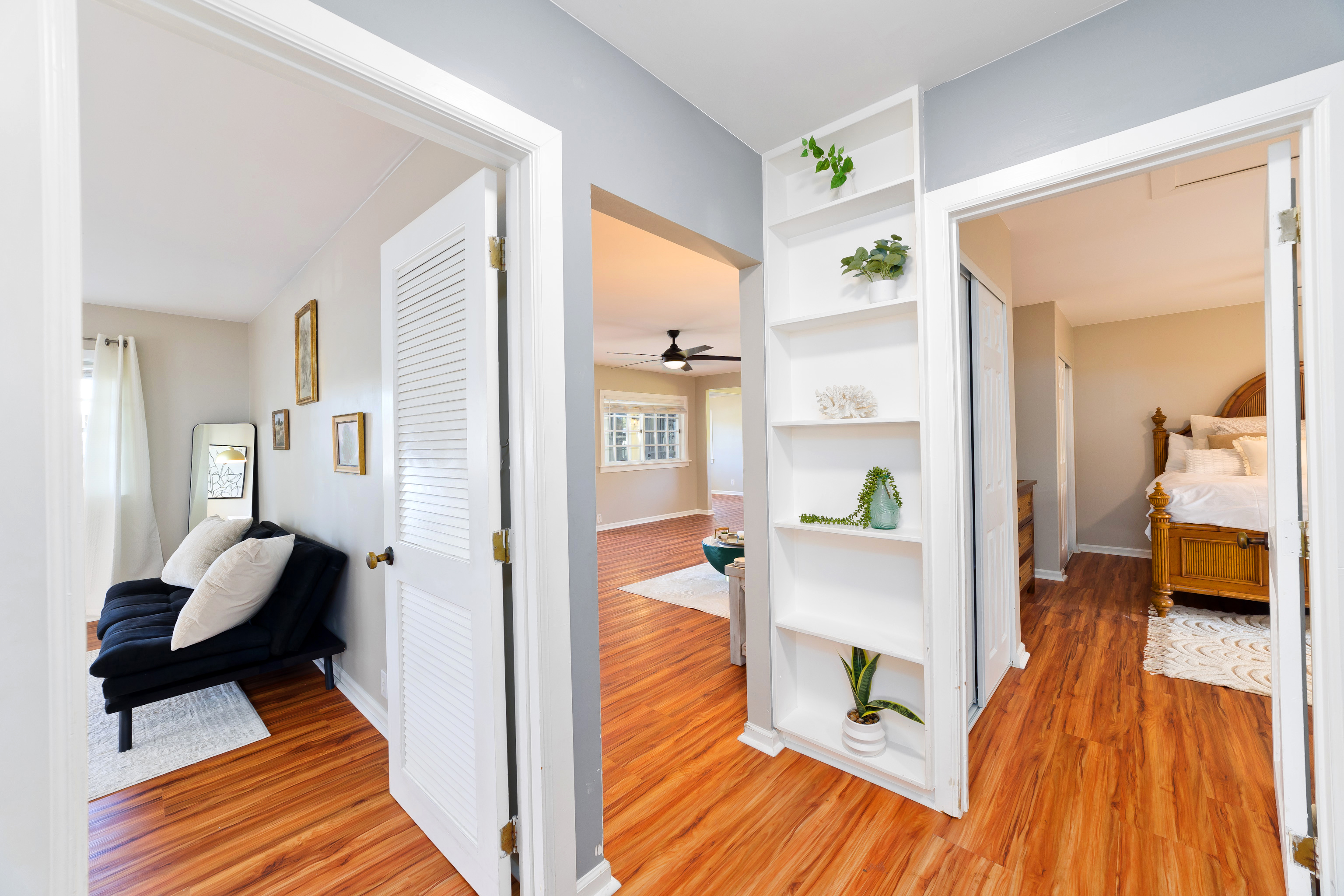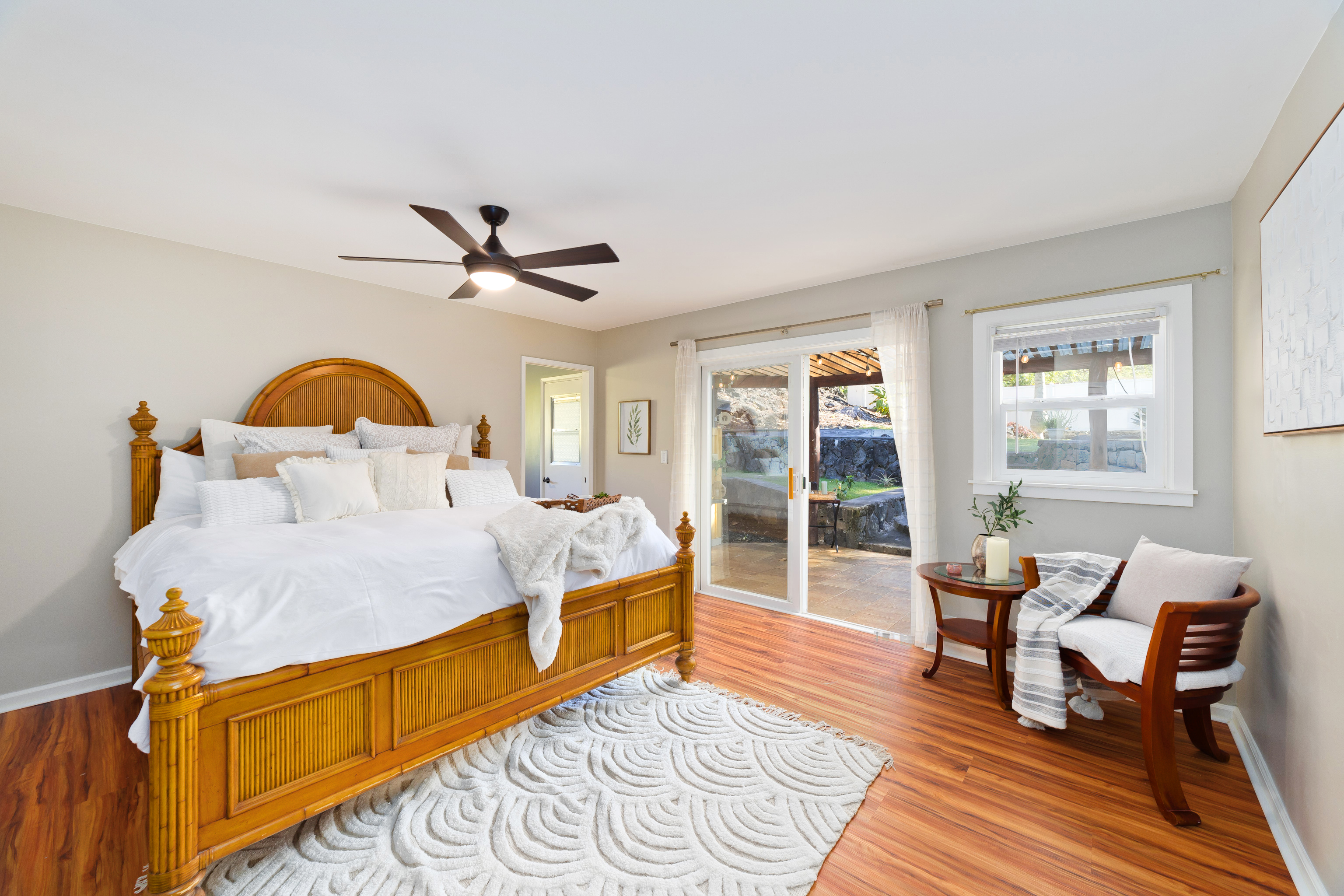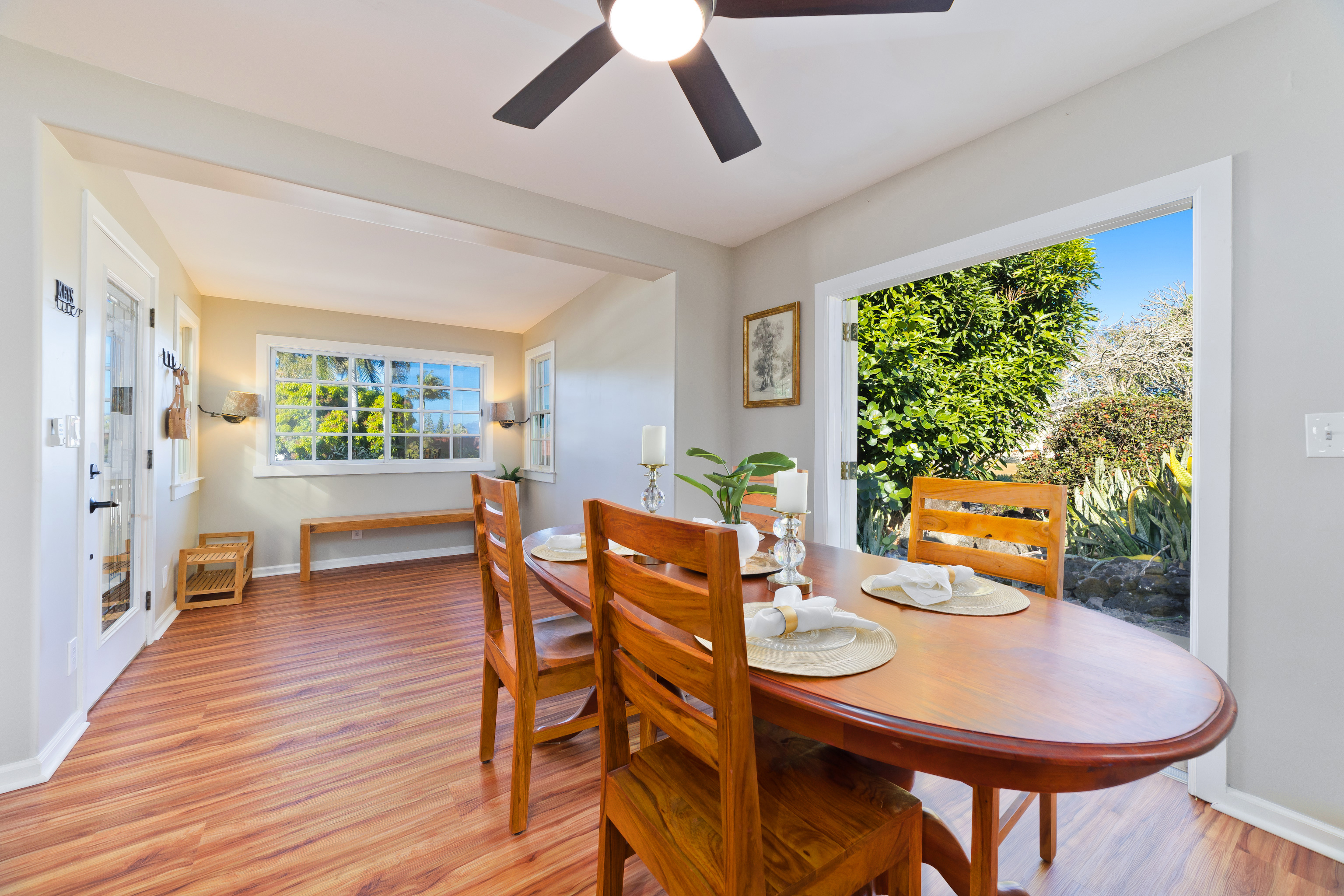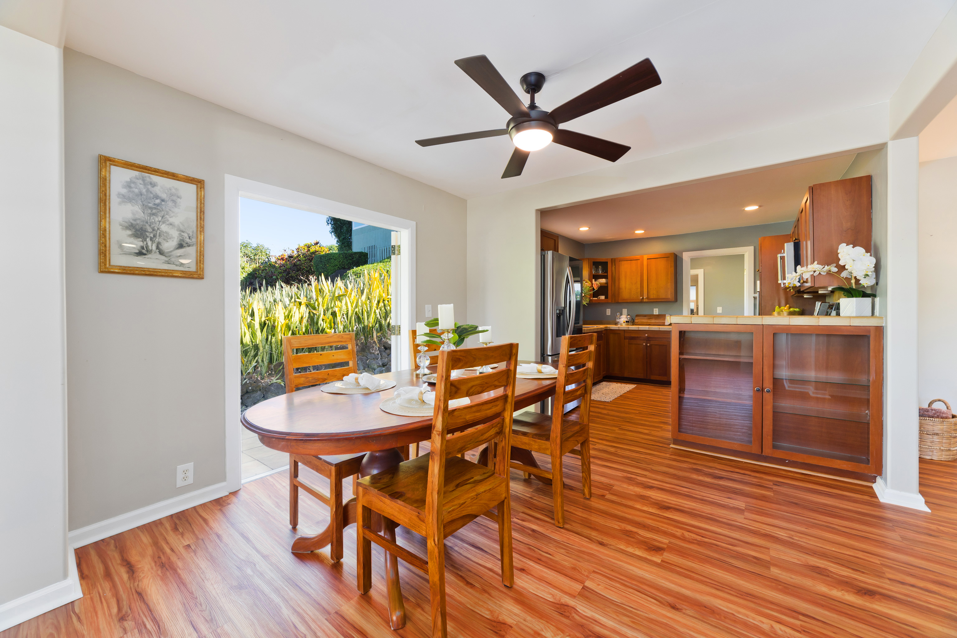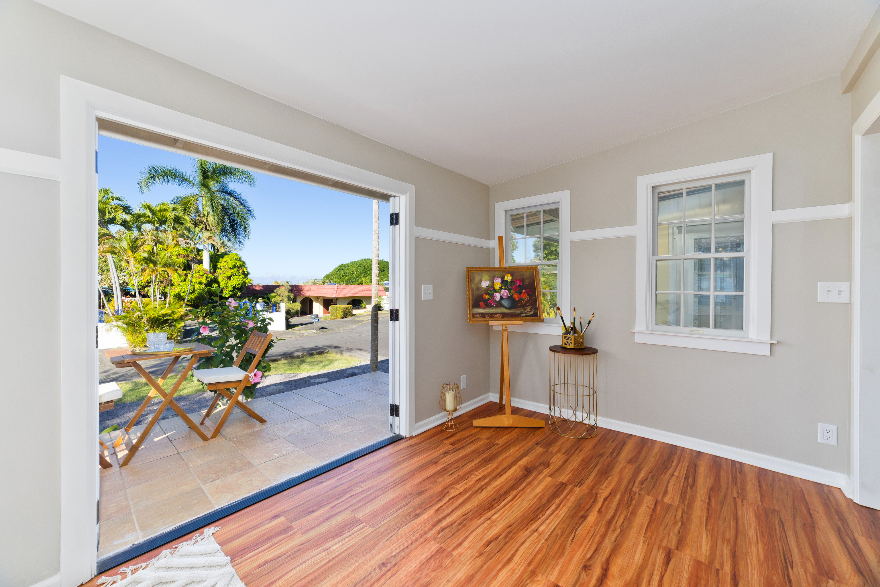 A separate office space with doors that open to a front patio creates a flexible area for working from home, hobbies, or guests. The landscaped yard sits on a quiet cul-de-sac while still being just minutes to town, or take the back road up to Holualoa for coffee, galleries, and cooler air.