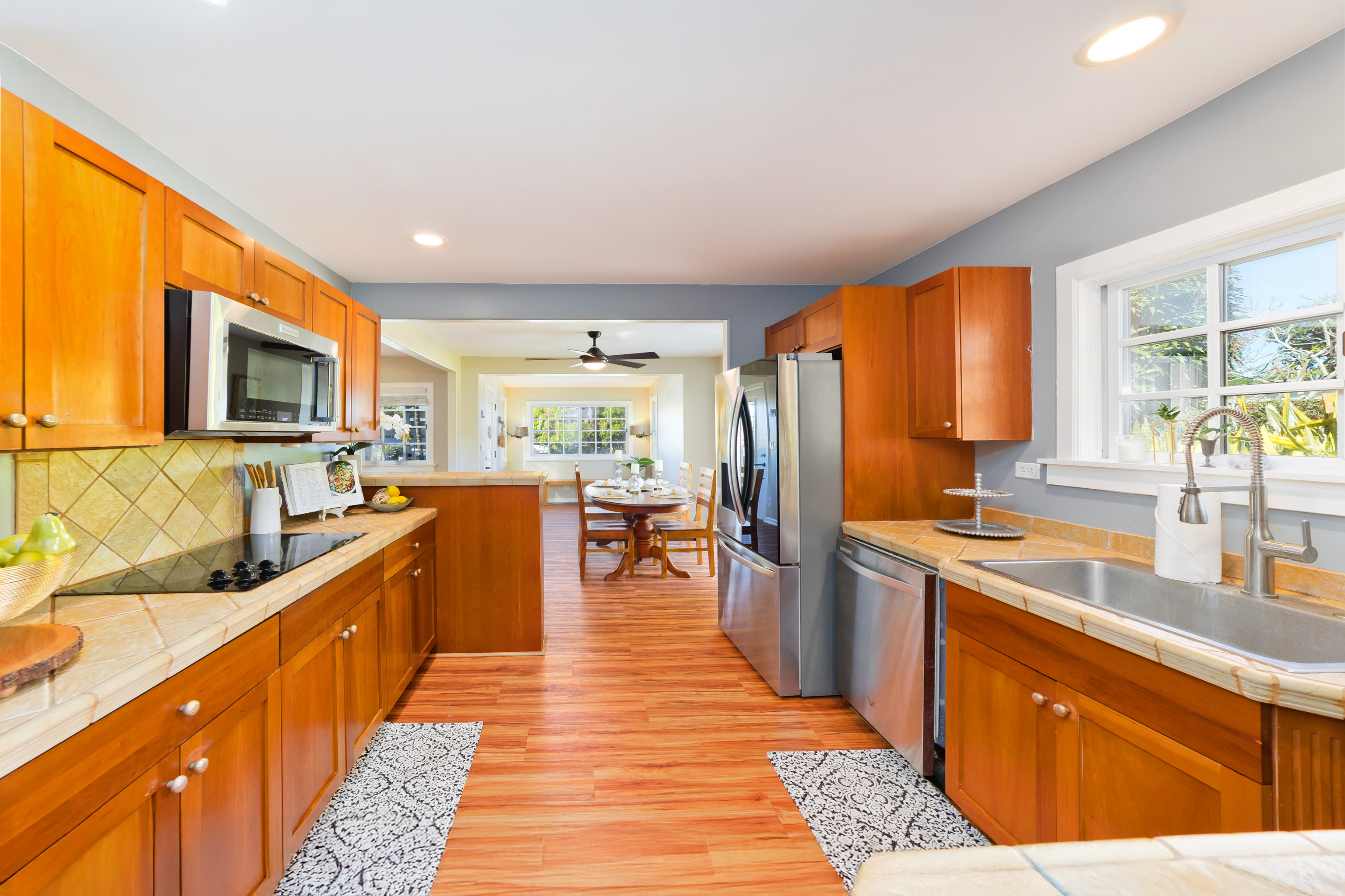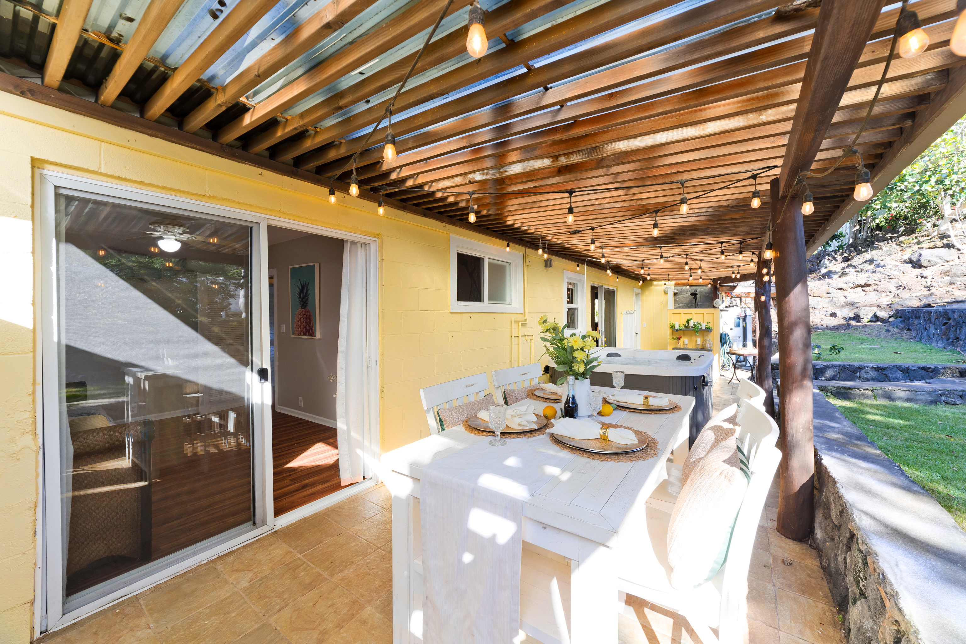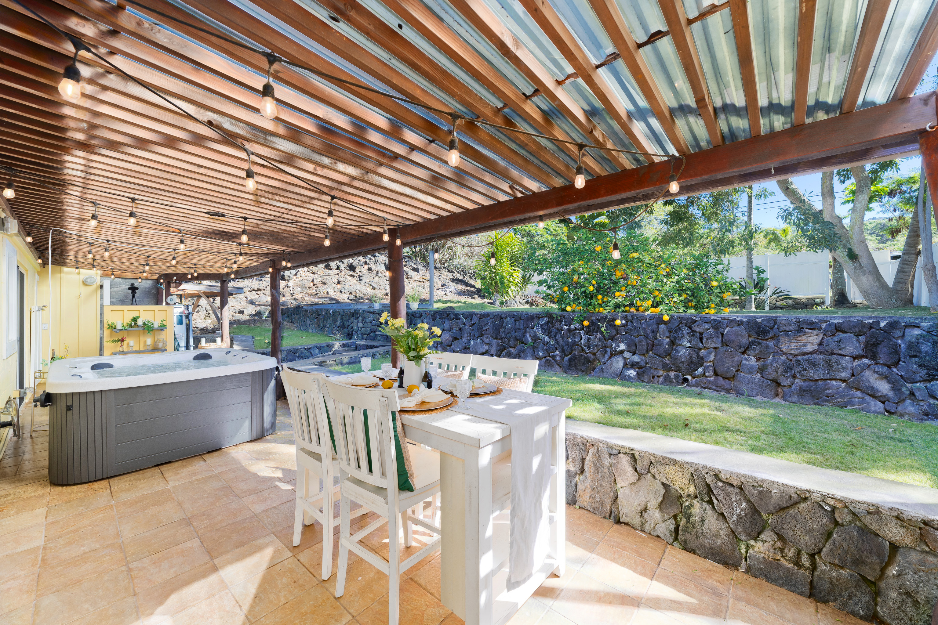 Well-built, charming, and bright 3-bedroom, 2-bath home with an open-concept layout and great natural light throughout. The backyard looks out toward Hualalai Mountain and includes an outdoor shower, hot tub, and an additional access gate for convenience.