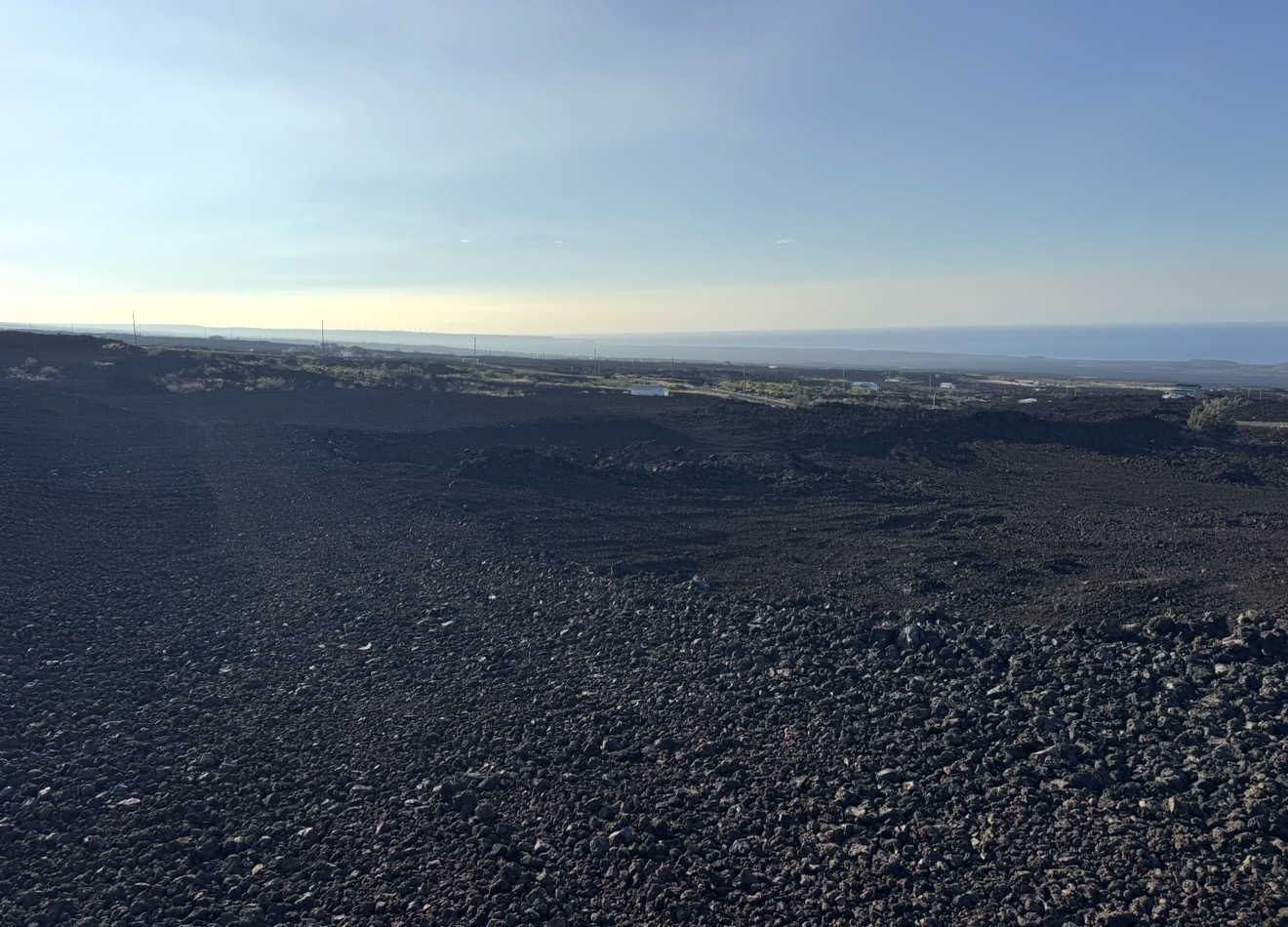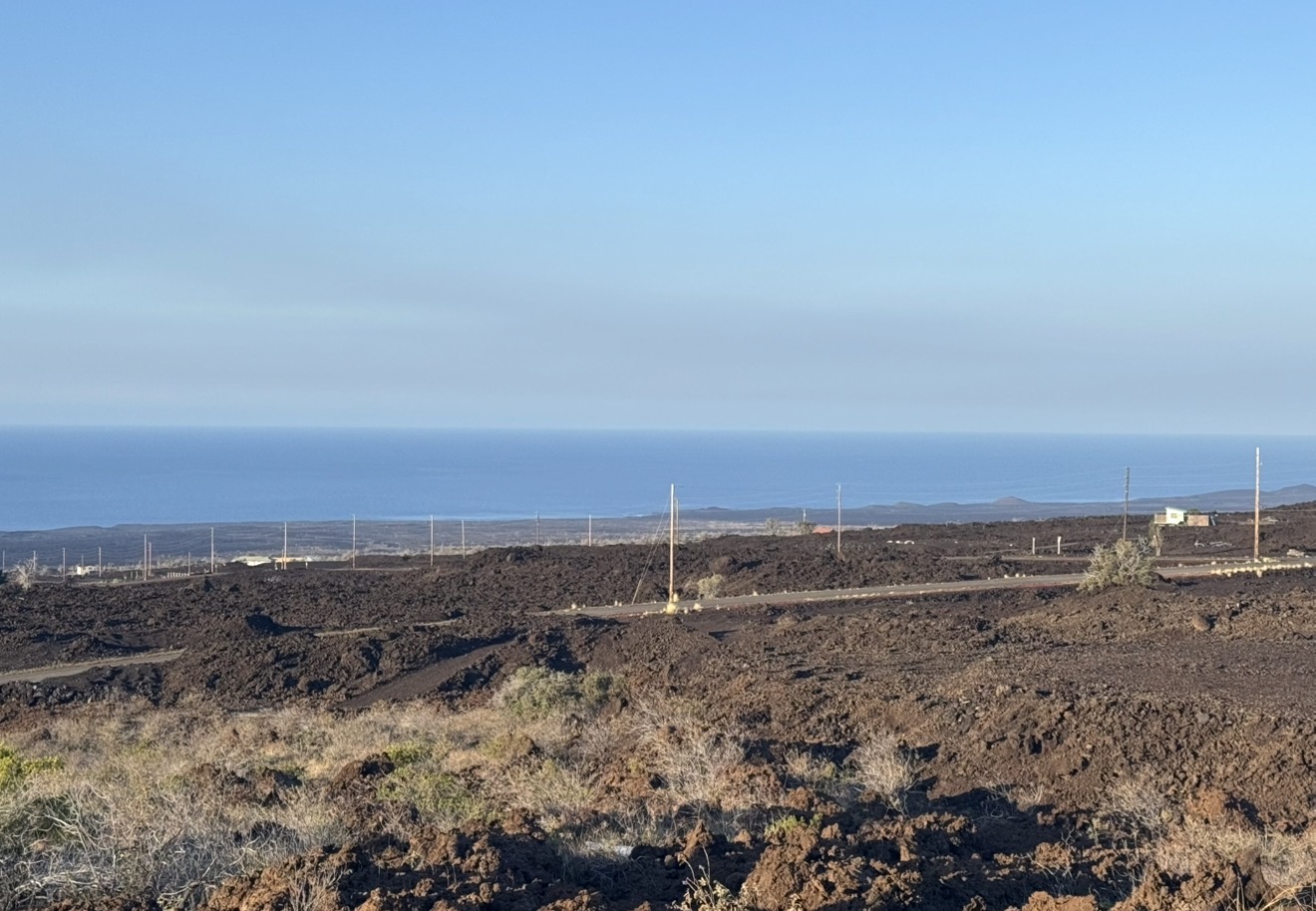 Coastline view from South Point north. 92-796 Prine Kuhio Blvd in the Ranchos section of Ocean View 3.0 acres 211' x 618' at elevation 1000'. Temperatures never below 62 degrees year round. Highs in the summer time are mid to high 80's. No need for A/C or heat. Tradewinds keep the humidity down. Property already graded with driveway and 200' x 150' house pad. The Ranchos area is growing and just over an hour to Kona or Hilo . Great place to grow your family, vacation or retire.